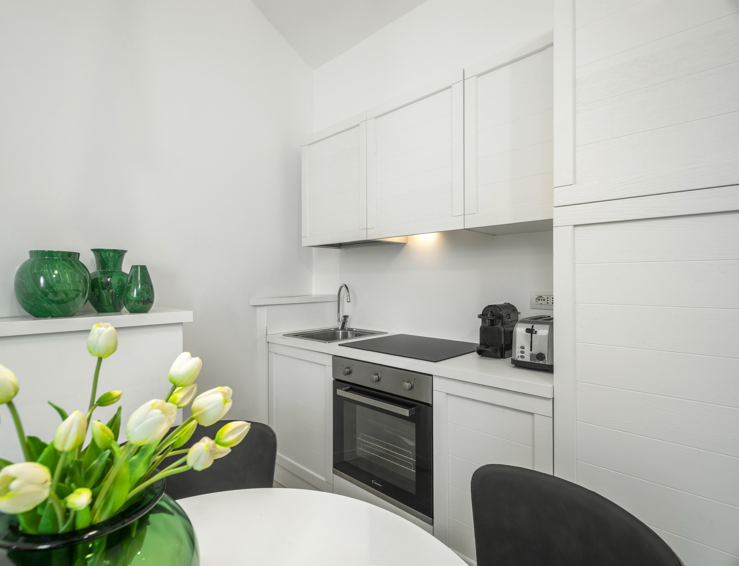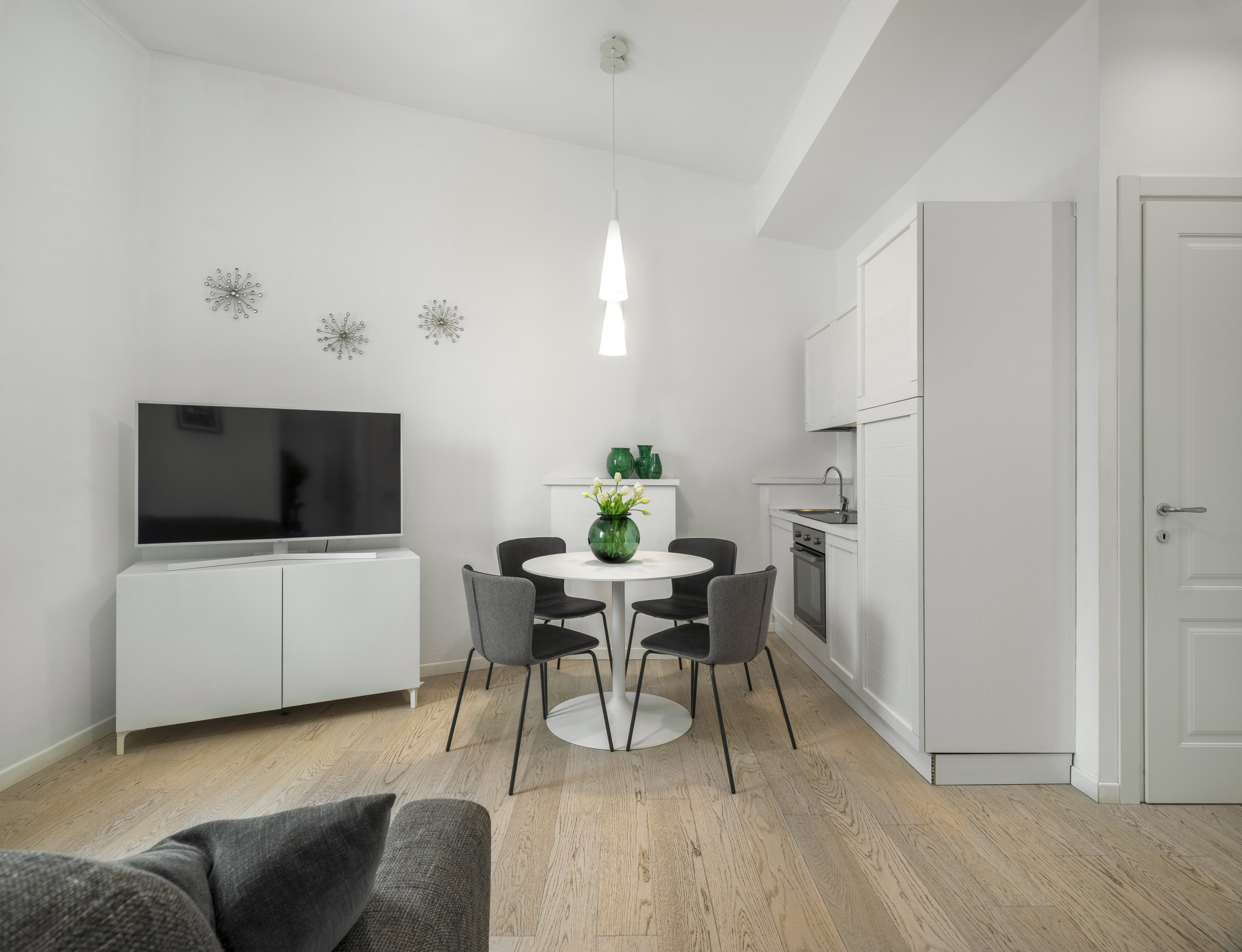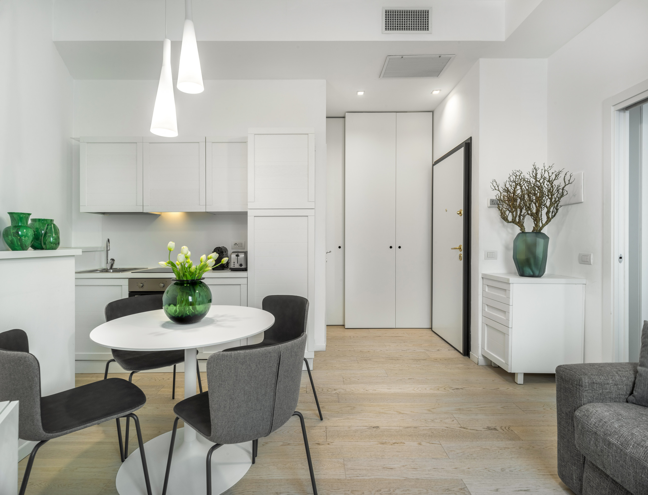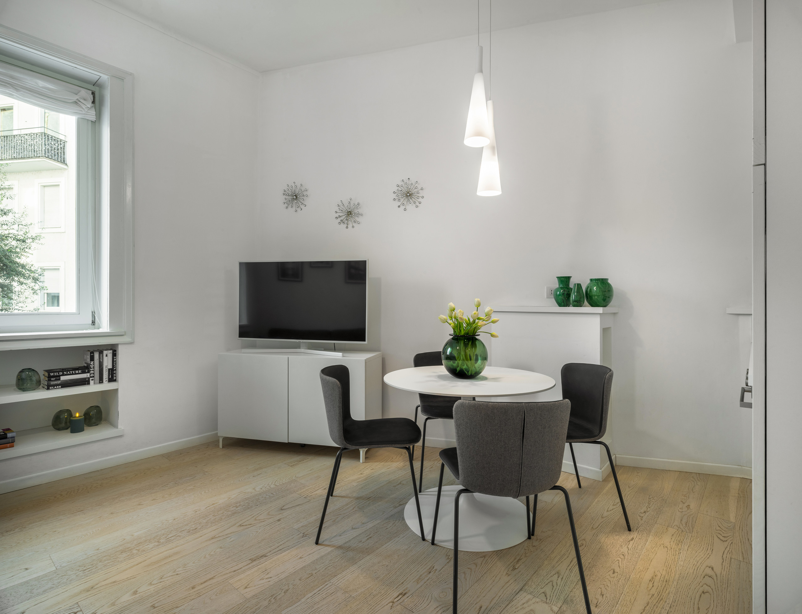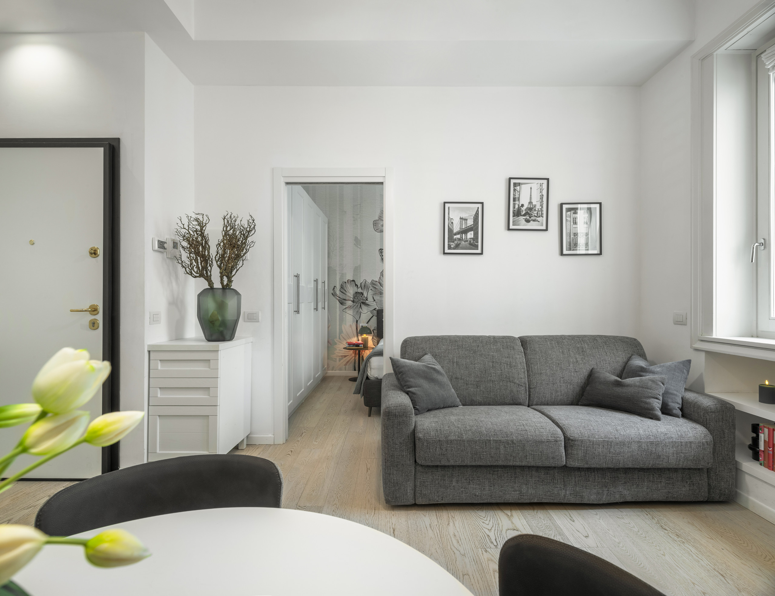 L’accogliente design moderno, pulito e raffinato vi farà sentire come a casa dopo una lunga giornata alla scoperta di Milano. L’alloggio è perfetto per coppie o famiglie e può ospitare fino a un massimo di 4 persone, si trova al primo piano ed è composto da soggiorno con divano che all’occorrenza può diventare un letto matrimoniale, cucina completamente attrezzata e completa di tutti gli elettrodomestici, camera matrimoniale e un bagno con doccia. Per il comfort dei nostri ospiti l’appartamento è dotato di accesso wifi, asciugacapelli, TV, ferro da stiro, aria condizionata e riscaldamento.