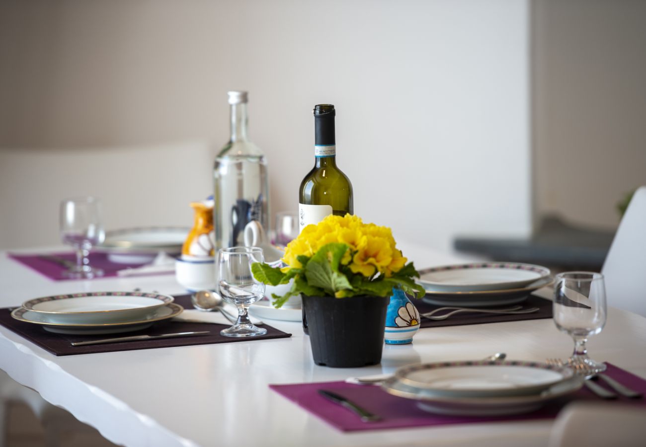 • Cucina completamente attrezzata vista mare, con tavolo per 4 persone (dotata di lavastoviglie)