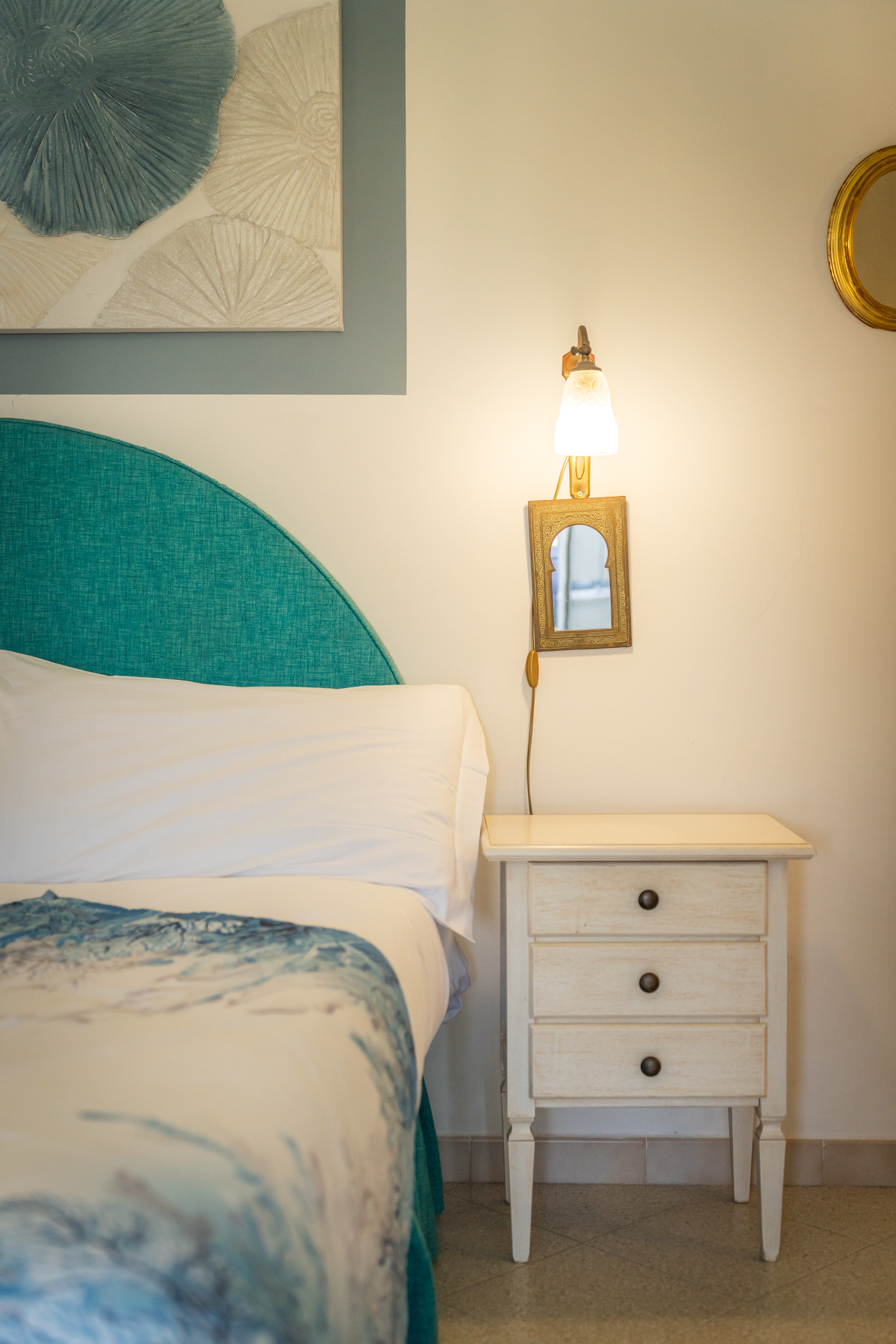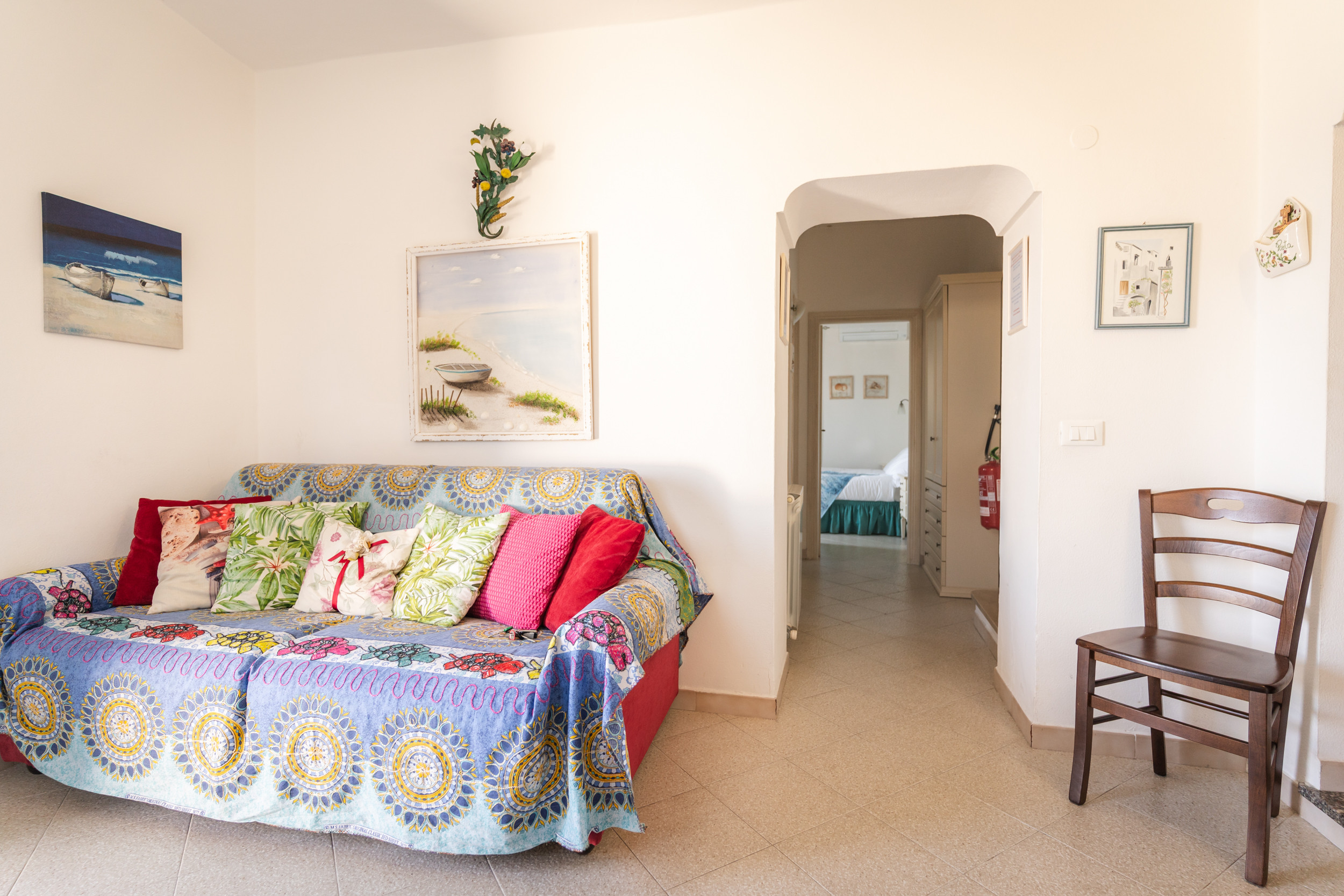 L'appartamento misura 50 mq ed è posto al terzo piano di un edificio senza ascensore in un contesto residenziale tranquillo e riservato. Internamente composto da un ingresso confortevole sulla zona giorno, cucina e comodo disimpegno che ci permette di accedere alla zona notte divisa in due camere da letto e bagno. Le stanze sono dotate di finestre posizionate sul tetto spiovente o laterali in modo da illuminare con luce naturale il livello sottostante. La luce che filtra dalle finestre e il cielo azzurro che si apre sopra le teste donano un fascino particolare creando un ambiente rilassante dove rifugiarsi dopo una lunga giornata di mare.