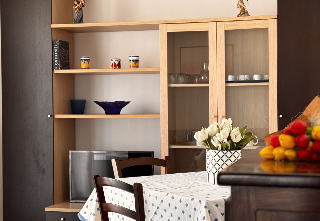 L’appartamento si affaccia parzialmente sul mare, offrendo un’atmosfera rilassante e mediterranea. È arredato con gusto, in uno stile fresco e funzionale, dotato di aria condizionata e Wi-Fi gratuito per un soggiorno all’insegna del comfort.