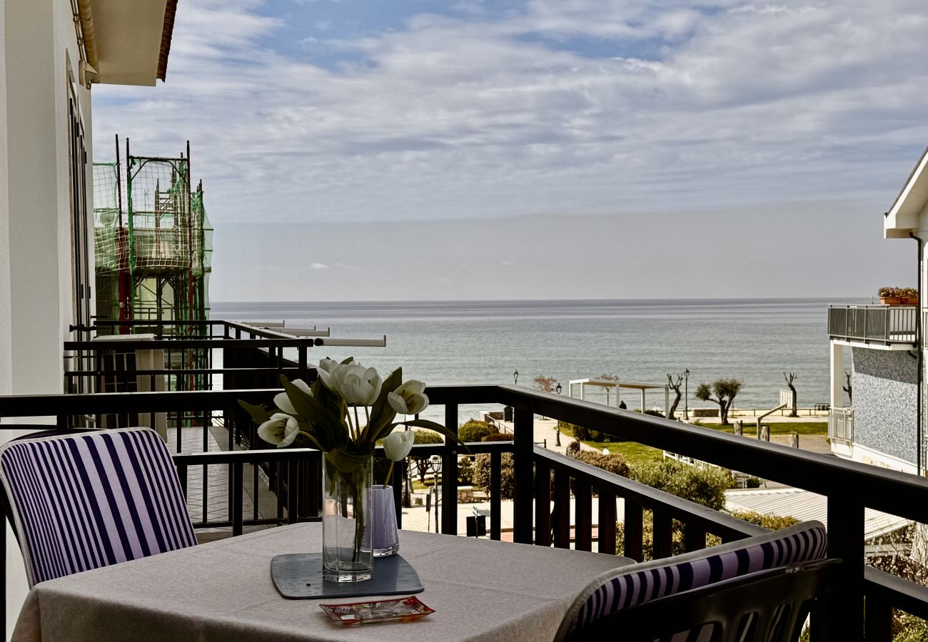 Dal salone si può già vedere la cucina a giorno completa e fornita di tutto il necessario, da qui come dalla sala attraverso una porta finestra si può comodamente accedere al terrazzo, arredato e con una magnifica vista sul mare e su tutto il litorale, perfetto per delle colazioni in compagnia.