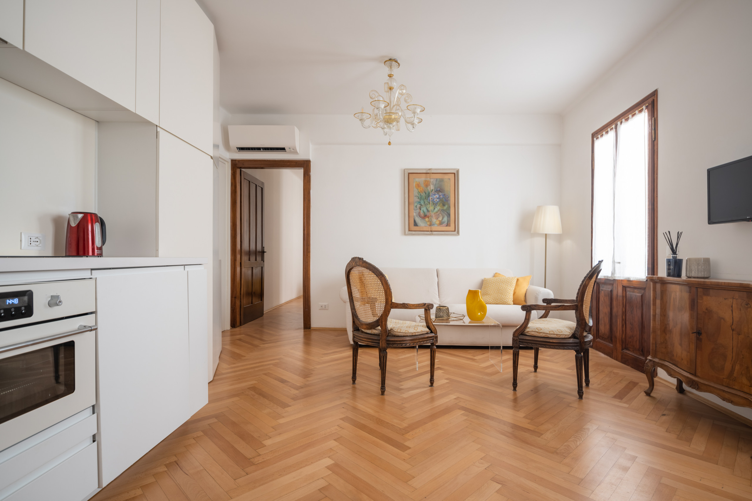 Questo delizioso appartamento, inserito in una palazzina di fronte al Canal Grande, è un mix tra stile veneziano e moderno. L'appartamento si trova al 2 piano raggiungibile tramite scale o ascensore. La sua posizione è ottima grazie alla vicinanza della stazione ferroviaria e della stazione degli autobus. Inoltre a soli 2 minuti si possono raggiungere le fermate dei vaporetti che vi possono portare in tutta la città.