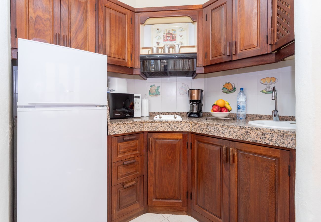 Alloggio molto ben sfruttato di 55m2, accogliente e moderno, con una comoda terrazza arredata con tavolo e sedie per trascorrere piacevoli serate con vista sul giardino e sulla piscina. Si trova in un piccolo complesso con pochi appartamenti, situato sulla collina di Playa de San Agustín, a 200 metri dall'alloggio c'è un accesso diretto alla spiaggia di San Agustín, una magnifica spiaggia familiare con servizi nelle vicinanze.