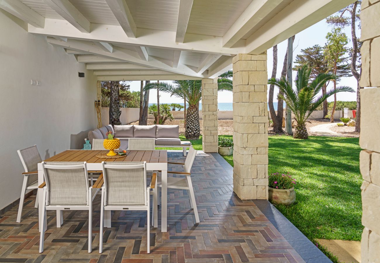 La dimora, una villa bifamiliare totalmente autonoma ed indipendente, gode di una posizione di assoluto privilegio: direttamente dal giardino di casa si accede alla scogliera e al mare della Fanusa, rinomato per le sue acque cristalline e i suoi straordinari fondali, ricchi di ogni specie marina.