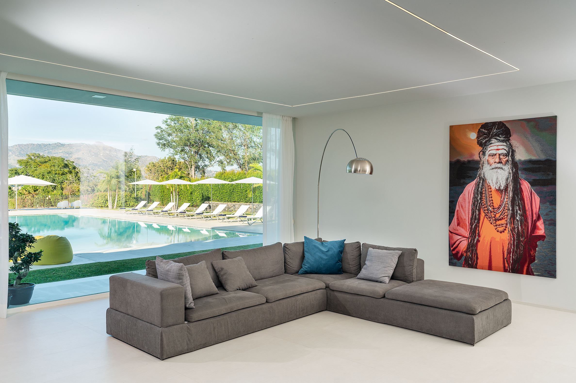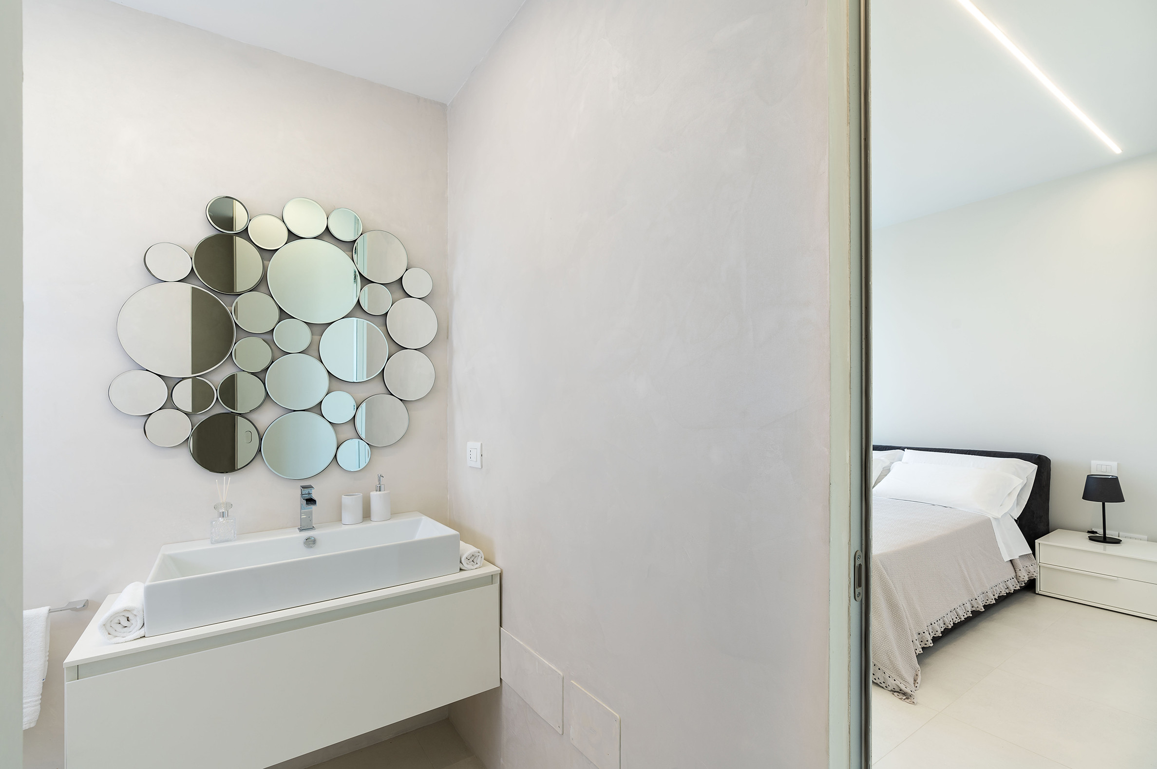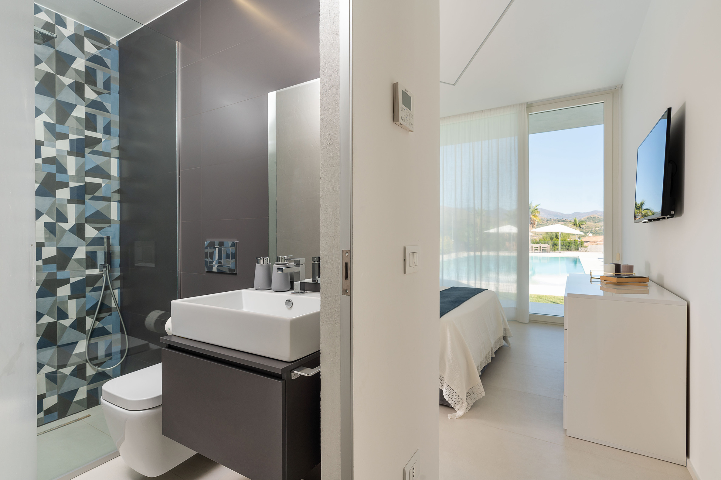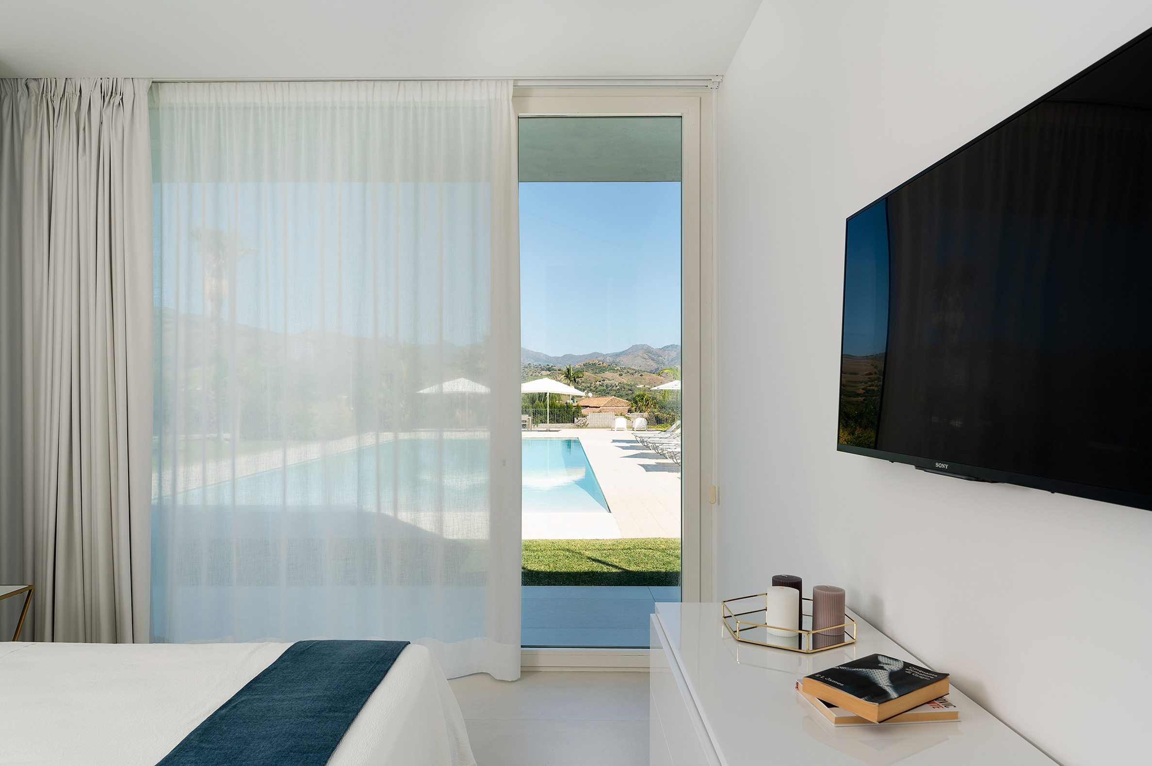 Villa Greta è una lussuosa villa con piscina situata nei dintorni di Taormina. Ideale per una vacanza confortevole e rilassante, la villa è circondata da uno splendido giardino con prato inglese, che ospita ampie terrazze, la grande piscina privata (mt 8 x 21) e la vasca idromassaggio. Di recente costruzione, questa esclusiva residenza contemporanea è costituita da una casa padronale e da una dependance. La casa padronale - che si sviluppa su due livelli - dispone di accoglienti e luminosi ambienti interni aperti sul giardino e sul paesaggio circostante attraverso grandi vetrate a tutt’altezza. Il piano terra comprende una zona living con cucina, una lussuosa suite matrimoniale con vasca idromassaggio a vista e bagno privato, due camere matrimoniali con bagno ed un quarto bagno con doccia. Al primo piano, collegato tramite scala esterna, si trovano un secondo soggiorno-pranzo con cucina, una camera matrimoniale con bagno privato, una camera doppia e un bagno di servizio. Mentre la dependance accoglie una zona giorno con angolo cottura, due camere da letto e due bagni. La villa dispone inoltre di una zona benessere con sauna e tapis-roulant e di numerosi comfort, quali A/C, internet Wi-Fi, 8 TV, ricevitore satellitare, asciugatrice, 2 lavatrici, 2 lavastoviglie, cassaforte e barbecue. Da villa Greta, si raggiungono in pochi minuti di auto il suggestivo centro storico di Taormina e il mare. Nei dintorni si trovano anche le spiagge di Fondachello e Giardini Naxos, il Parco dell’Etna e le gole dell’Alcantara, i borghi marinari della Riviera dei Ciclopi, Catania e Siracusa.
