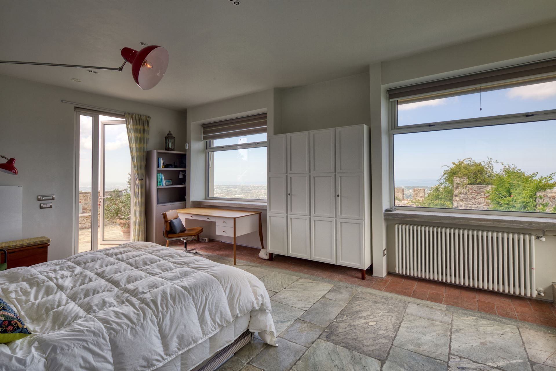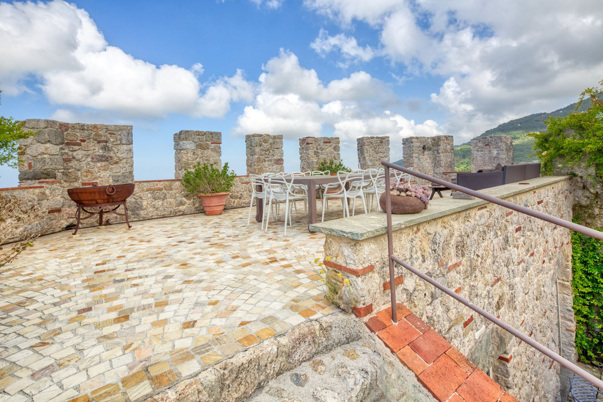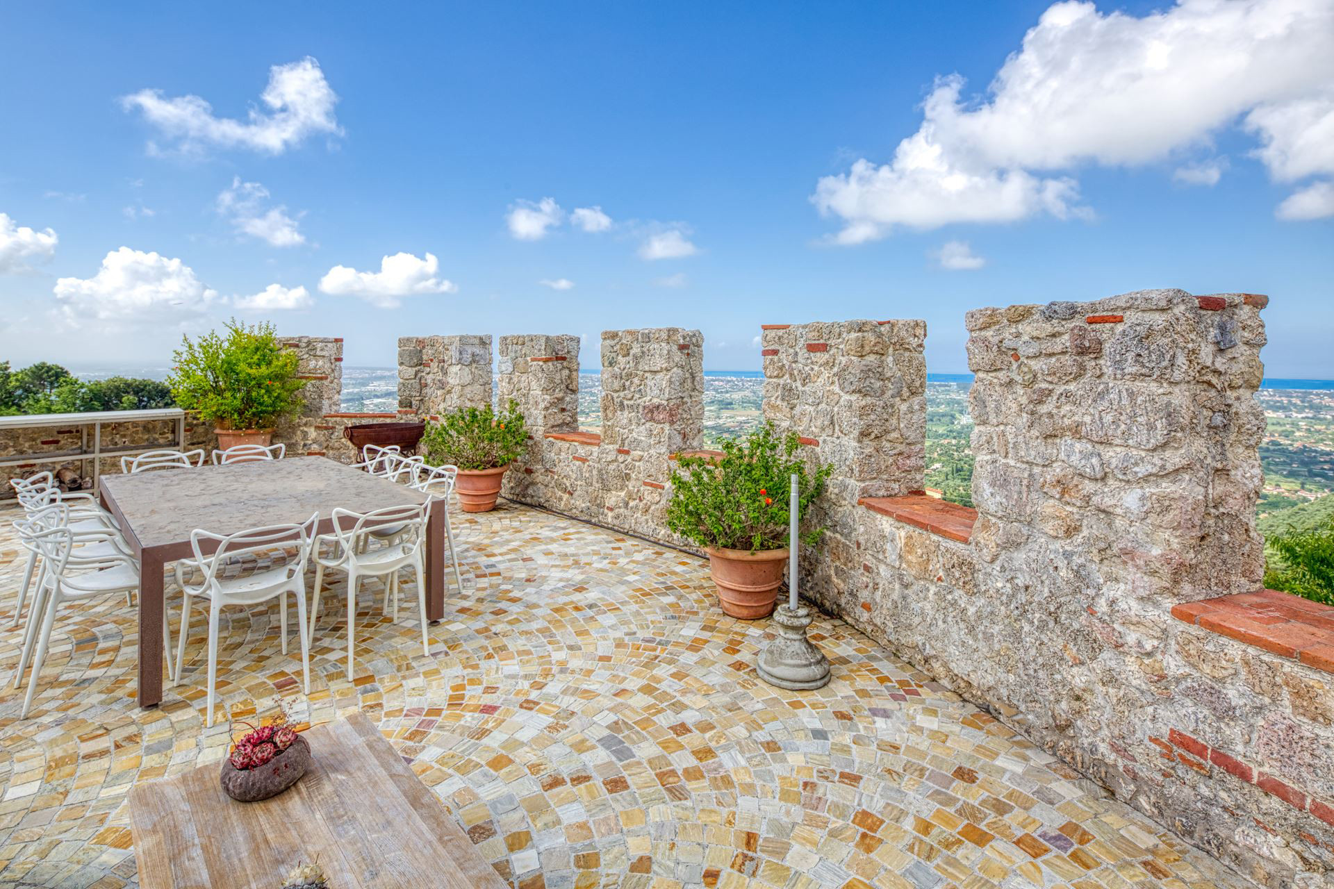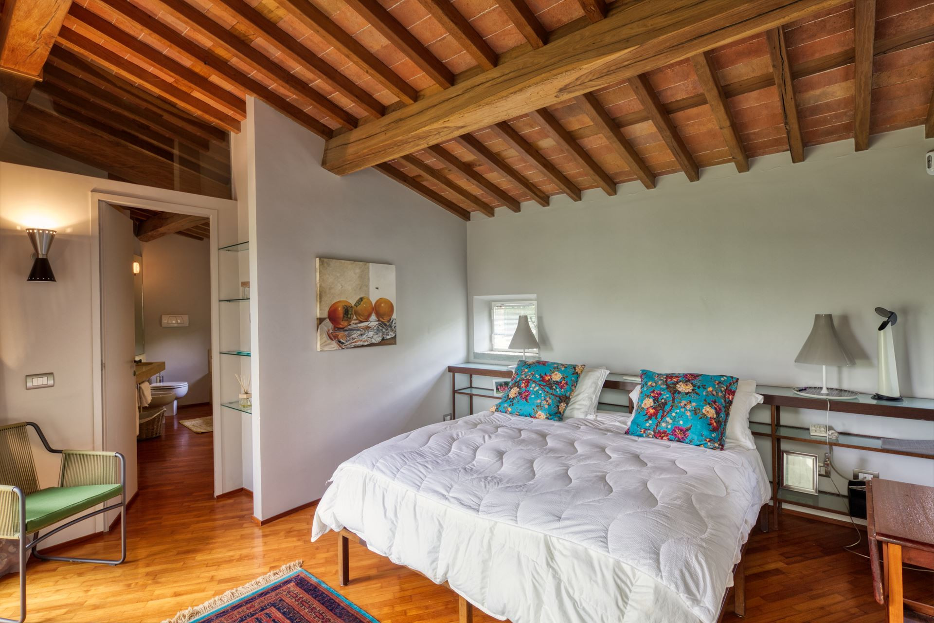 Sulla sommità di una collina toscana è ubicata Villa La Rocca, porzione di un castello medievale accuratamente ristrutturato dai proprietari che hanno saputo coniugare la storica atmosfera del luogo ai migliori comfort moderni. E’ una location affascinante in grado di ospitare comodamente 6 persone (preferibilmente non bambini o persone anziane a causa dei gradini e della sua struttura). Gli ospiti dovranno parcheggiare l’auto in un garage privato (a circa 300 metri dalla villa) e da lì verranno accompagnati direttamente al portone d’ingresso della proprietà con un mezzo dedicato. La villa dispone di un ampio e confortevole salotto con camino a legna naturale e due spaziose camere da letto con bagno privato, il primo dotato di un’ampia e rilassante vasca da bagno e il secondo di una cabina doccia a vetri con magnifica vista sul panorama sottostante. Accanto al corpo principale vi è una dependance che dispone di una sitting area e di un’ulteriore camera da letto con un elegante bagno in marmo. All’esterno la dimora offre una bella piscina e un ampio giardino colmo di cespugli di lavanda, rose, limoni e aranci disposti su diversi livelli e valorizzati da diversi terrazzi ideali per gli aperitivi o le cene all’aria aperta. I principali comfort sono tutti presenti: dalla connessione internet alla tv satellitare, dall’aria condizionata alla macchina da caffè americano. Tutto questo incontaminato splendore a 10 minuti di auto dalle stupende spiagge sabbiose di Pietrasanta e di Forte dei Marmi.
