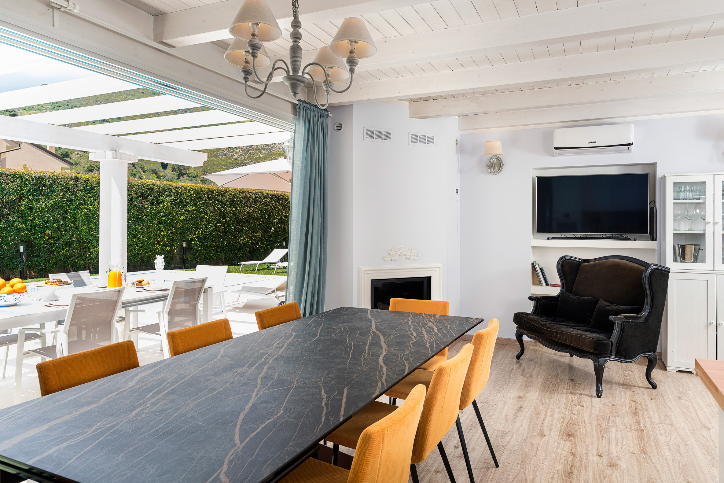 Terrazza, zona pranzo con barbecue, giardino, piscina, solarium.