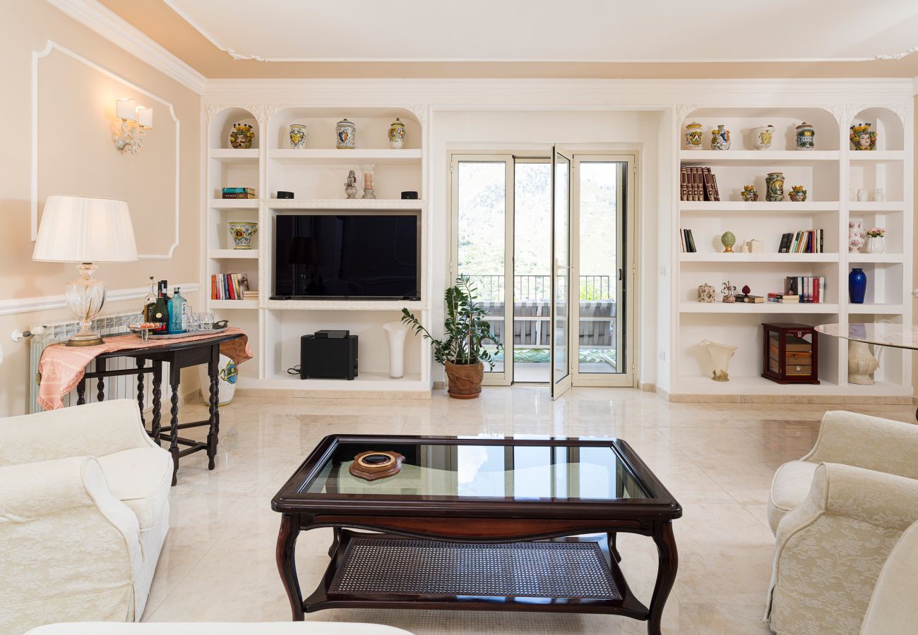 Villa Giutitta è una bella villa con piscina posta in posizione panoramica a pochi chilometri da Taormina. Situata su una collina, in un piacevole e tranquillo contesto residenziale, la villa gode di una splendida vista su Taormina e Castelmola. Circondata su tre lati da un curato e grazioso giardino, la dimora si articola su tre livelli. Dal cancello di ingresso della proprietà una scala conduce al piano terra, che si sviluppa al livello piscina e comprende un salone, un soggiorno-cucina, una camera da letto con bagno privato ed un bagno di servizio. Al piano superiore si trovano due camere da letto, entrambe corredate da cabina armadio e bagno privato. Mentre al piano inferiore della villa, accessibile anche dall’esterno, si trova una grande camera da letto con bagno privato, terrazza e giardino. Eleganti e raffinati, gli ambienti interni di Villa Giutitta dispongono inoltre di connessione internet Wi-Fi, 6 TV, ricevitore satellitare, aria condizionata, lavatrice e lavastoviglie. All’esterno la villa offre, oltre alla bella piscina con idromassaggio, vari angoli attrezzati per il relax all’aria aperta ed una comoda zona pranzo con barbecue. Da questa esclusiva dimora si raggiungono in pochissimi minuti di auto il centro storico di Taormina, le spiagge di Giardini Naxos, dell’Isola Bella e di Mazzarò. Nei dintorni meritano una visita anche i paesini alle pendici dell'Etna, Catania, Siracusa e Ortigia.