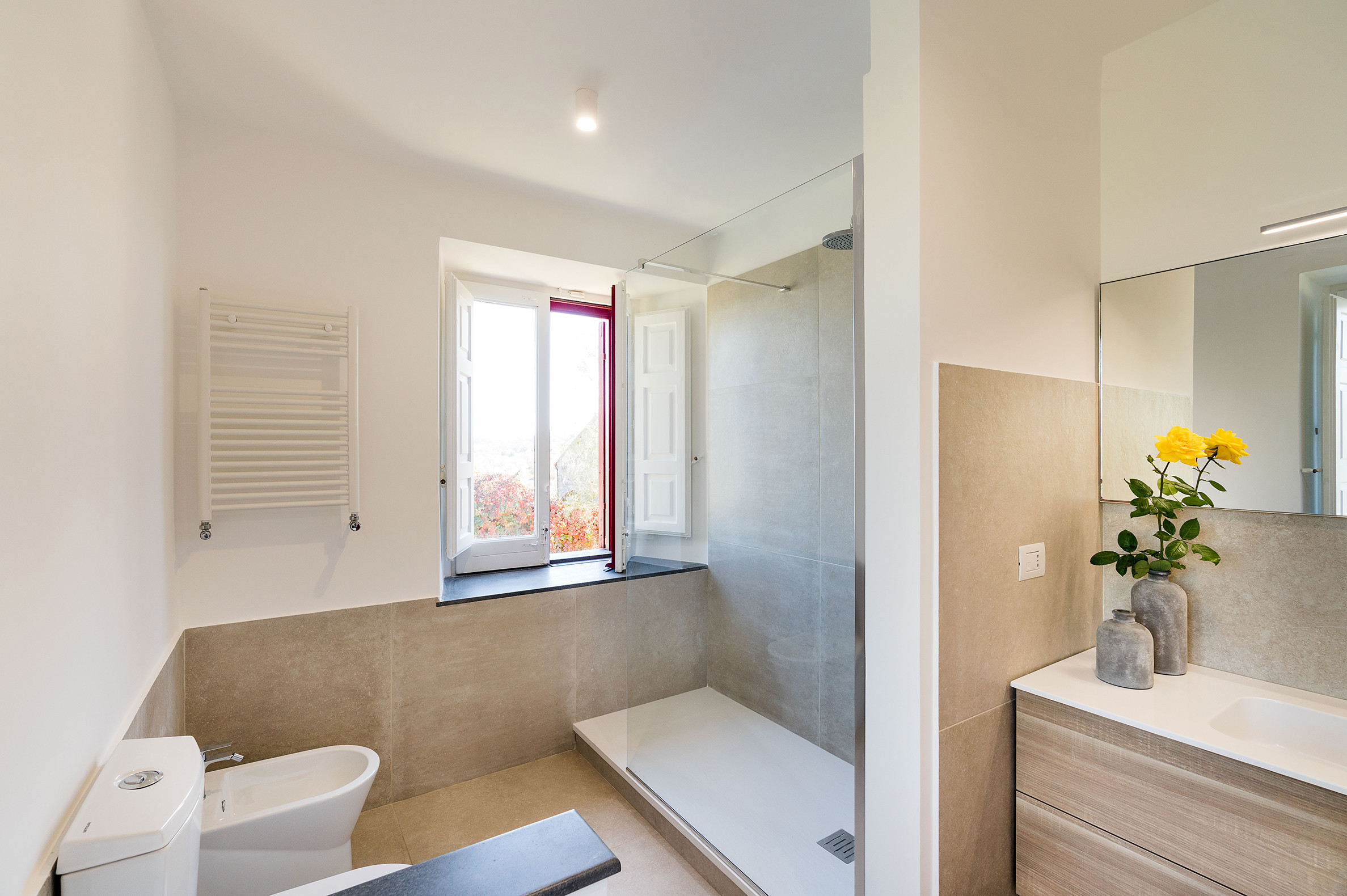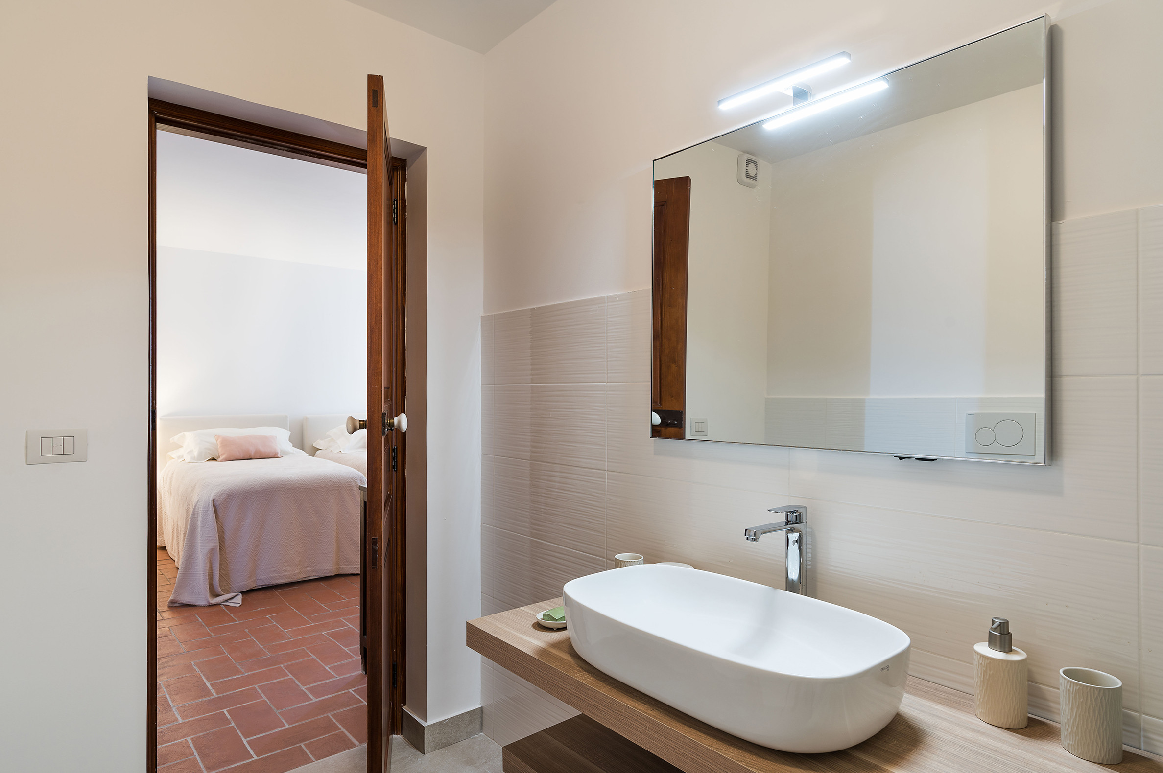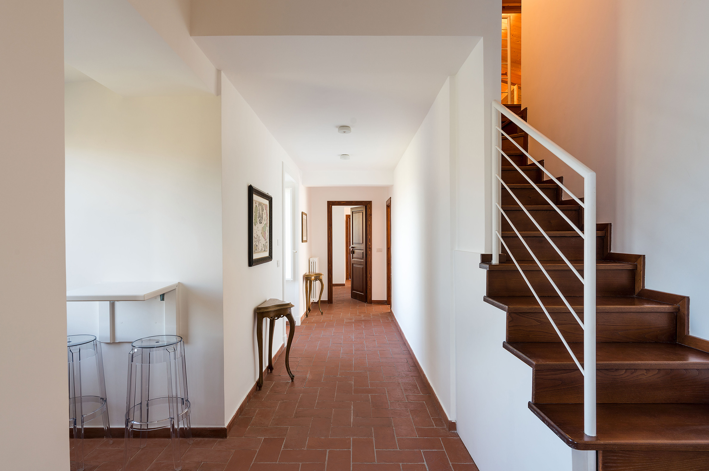 Piano Terra: Ampio living con salotto, zona pranzo e cucina, 1 bagno (wc-lavabo). Primo Piano: 2 camere matrimoniali con bagno-doccia, 1 camera doppia con bagno-doccia. Secondo Piano (in mansarda): 1 suite con camera matrimoniale e bagno-vasca e doccia.