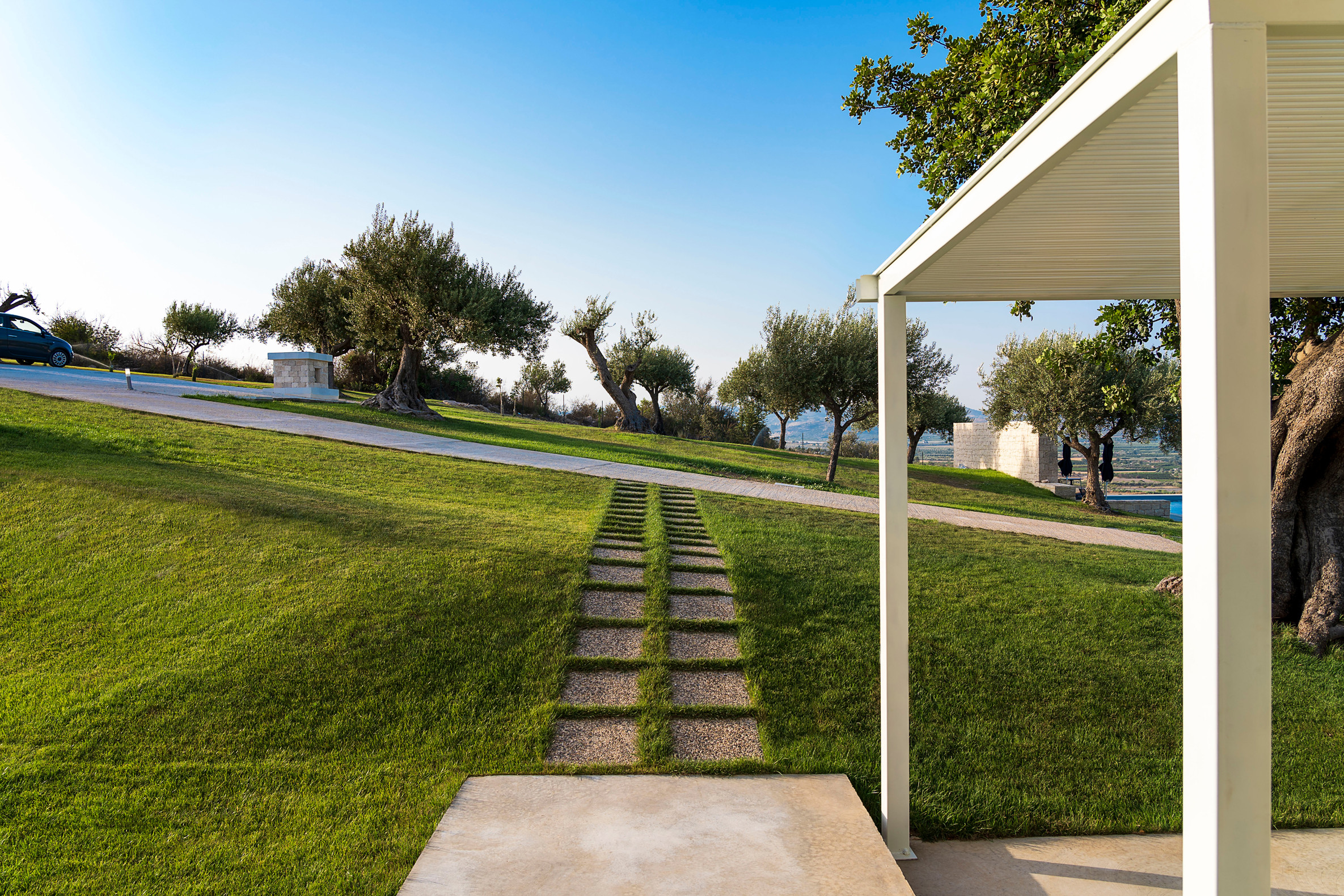ColleVerde è una moderna villa con piscina situata nella Sicilia sud-orientale, nei dintorni di Noto. Immersa nella campagna, ma a pochi minuti di auto dal mare, questa dimora è ideale per rilassanti vacanze in coppia o in famiglia, ma anche per partire alla scoperta delle meravigliose cittadine barocche del Val di Noto e delle splendide spiagge di sabbia che punteggiano tutta la costa, da quelle di Vendicari e San Lorenzo a Santa Maria del Focallo. Inserita in un incantevole contesto rurale, ornato da ulivi, carrubi e muretti a secco, la dimora è circondata da un ampio giardino che accoglie la bella piscina privata ed una terrazza attrezzata per pranzi all’aperto. Distribuiti su un unico livello, gli accoglienti e confortevoli ambienti interni comprendono una luminosa zona giorno con salotto, tavolo da pranzo, cucina e bagno di servizio, una camera padronale con letto king size, TV e bagno con vasca, e due camere matrimoniali con bagno-doccia. La villa dispone inoltre di internet Wi-Fi, ricevitore satellitare, microonde, lavatrice e lavastoviglie. Tutti gli ambienti sono climatizzati.