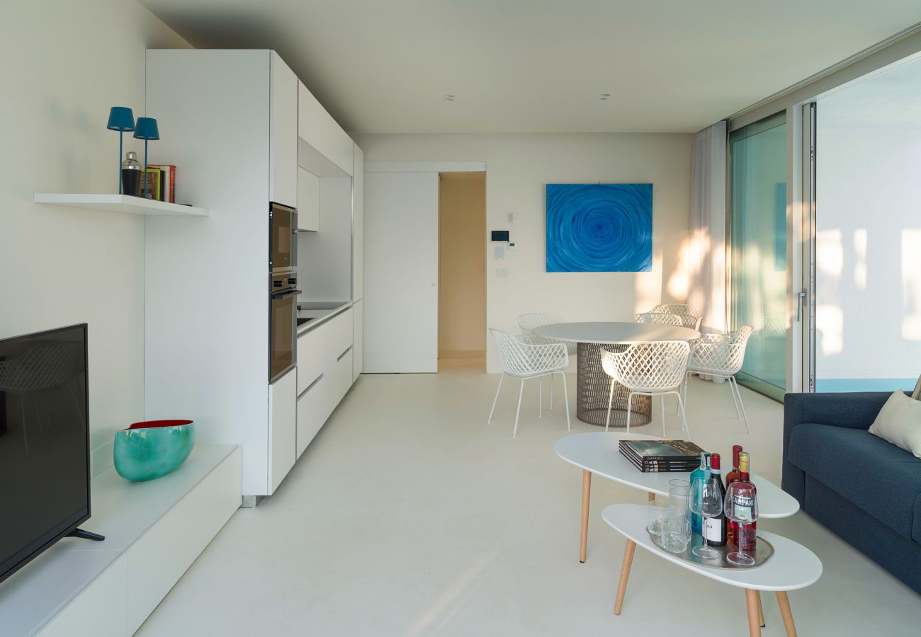 Casa Blu è un’esclusiva villa sul mare a Fontane Bianche, rinomata località balneare a sud di Siracusa. Situata in splendida posizione - all’interno di un tranquillo complesso residenziale - la villa, che si affaccia direttamente su una bassa scogliera lambita da acque cristalline, è perfetta per trascorrere piacevoli vacanze “pieds-dans-l’eau”. Bastano pochi passi per concedersi bagni da sogno ed effettuare indimenticabili immersioni. In questa location straordinaria gli spazi esterni sono “il fiore all’occhiello” della casa. Progettati con grande cura ed arredati con comodi divani, chaise longue, poltrone, sedie e tavoli consentono di vivere all’aria aperta gran parte del giorno e della sera. Sulla terrazza una veranda “freestanding”, realizzata come estensione del living, crea una sensazione di continuità tra l’esterno e l’interno. Da questa terrazza si accede al soggiorno che comunica con la cucina e introduce alle due camere da letto. Arredata in perfetto stile contemporaneo, la residenza offre interni curati ed eleganti caratterizzati da un design minimal “total white”, che dona luminosità e freschezza ad ogni ambiente e rende l’atmosfera della casa ancor più raffinata ed accogliente. Casa Blu è anche la base ideale per partire alla scoperta dell’incantevole patrimonio artistico ed architettonico della Sicilia sud-orientale e delle sue cittadine barocche, patrimonio dell’UNESCO, come Siracusa, Noto, Modica, Ragusa-Ibla. Altri luoghi da non perdere sono: la mondana Catania, l’affascinante Taormina, i caratteristici borghi marinari di Portopalo e Marzamemi, le riserve naturali di Cavagrande del Cassibile, di Vendicari e la spiaggia di Calamosche, ma anche il parco dell’Etna e l’isola di Capo Passero.