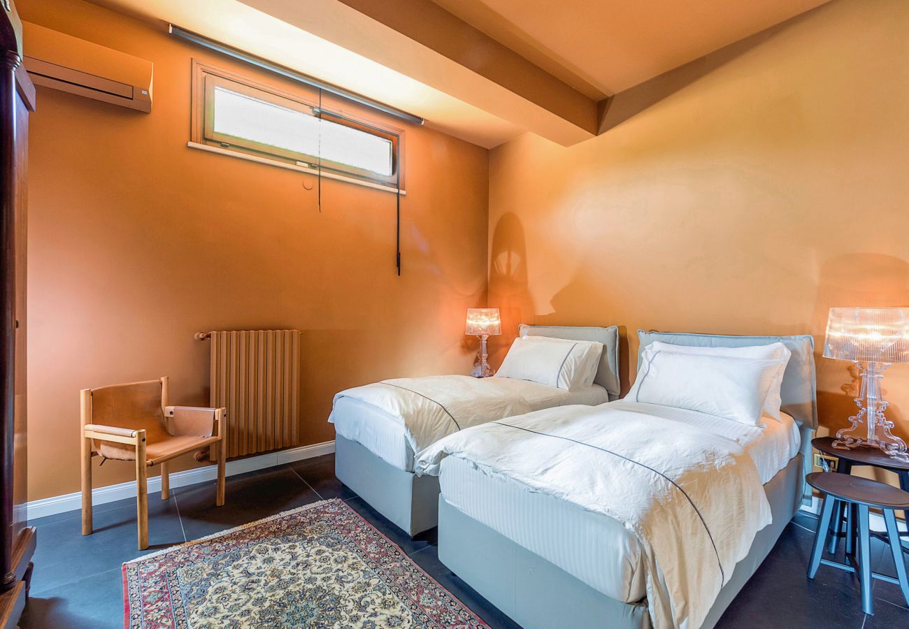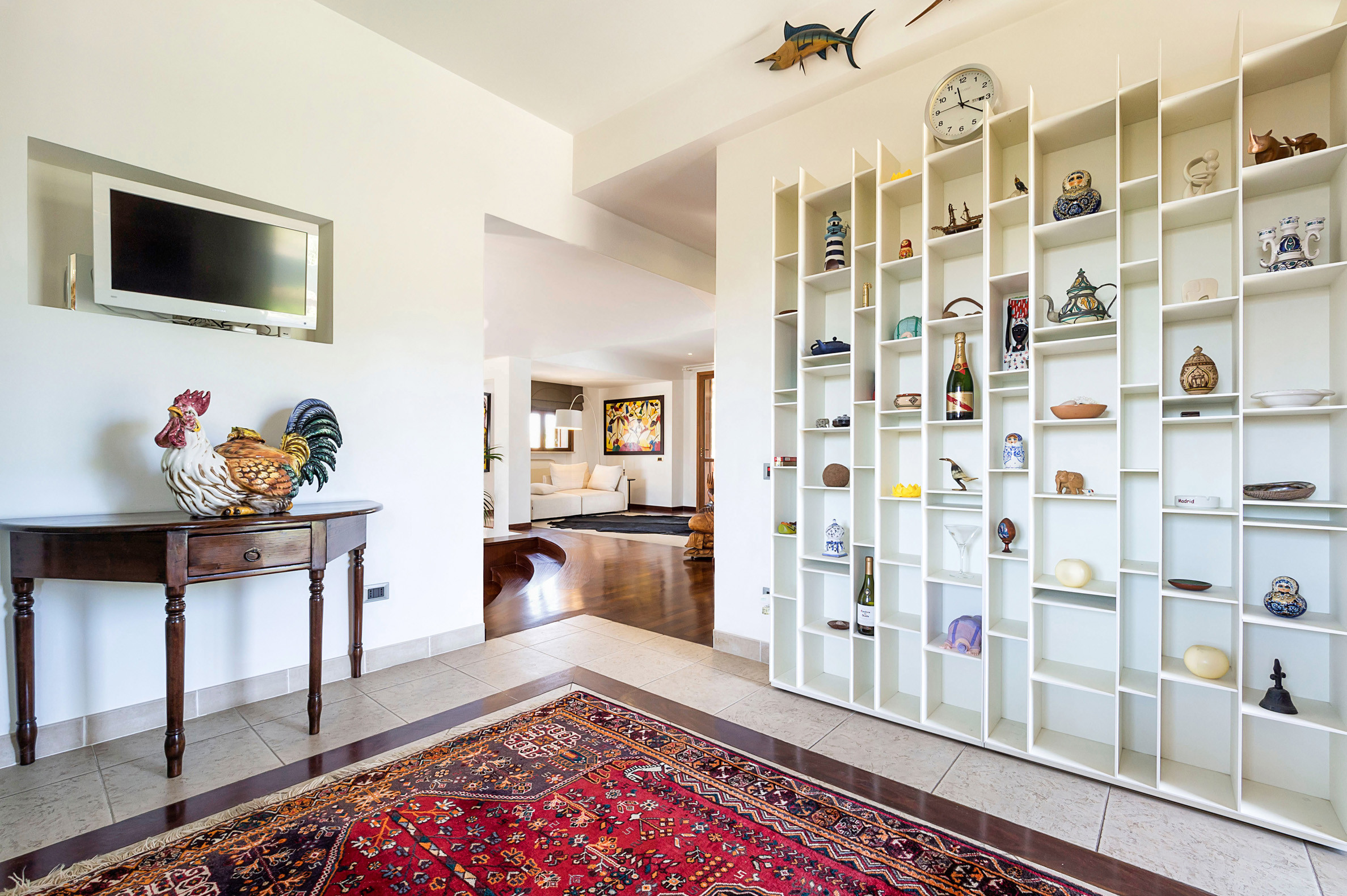 Piano Terra (rialzato): salotto con camino, soggiorno, cucina con zona pranzo, 1 camera matrimoniale con cabina armadio, 1 bagno con doccia, 1 bagno con vasca (idromassaggio). Primo Piano (mansarda): 1 camera matrimoniale, 1 bagno con vasca. Piano Inferiore: 1 camera matrimoniale con bagno-doccia, 1 camera doppia, 1 bagno con doccia, sala massaggi, lavanderia.
