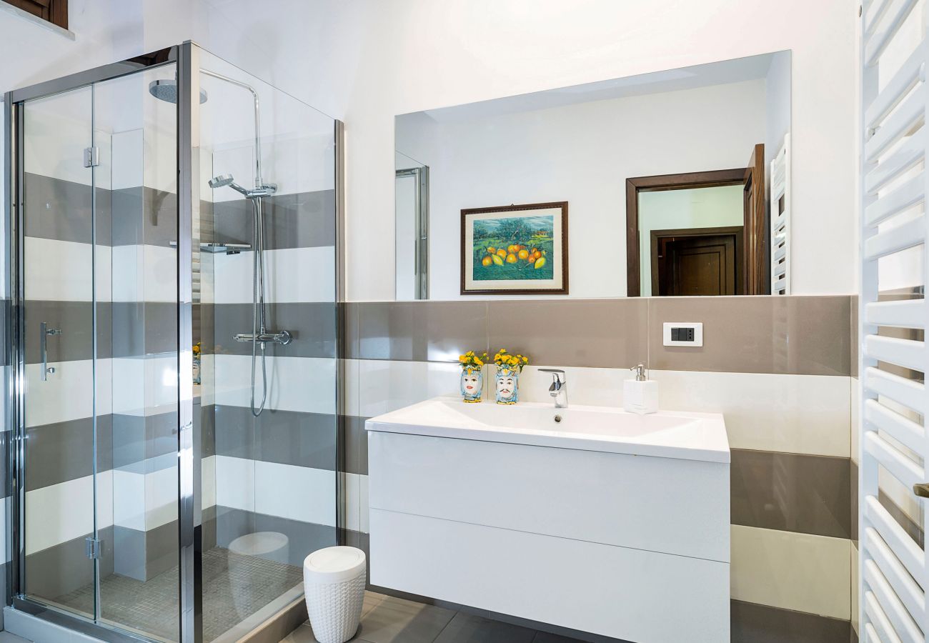 Piano Terra: ampio living con salotto (pianoforte - tv), sala da pranzo, cucina, 1 bagno (wc e lavabo), lavanderia, 3 camere matrimoniali (letti cm 180x200) con bagno-doccia. Primo Piano: studio, 1 camera matrimoniale (letto cm 180x200) con bagno-doccia e vasca, terrazzino.