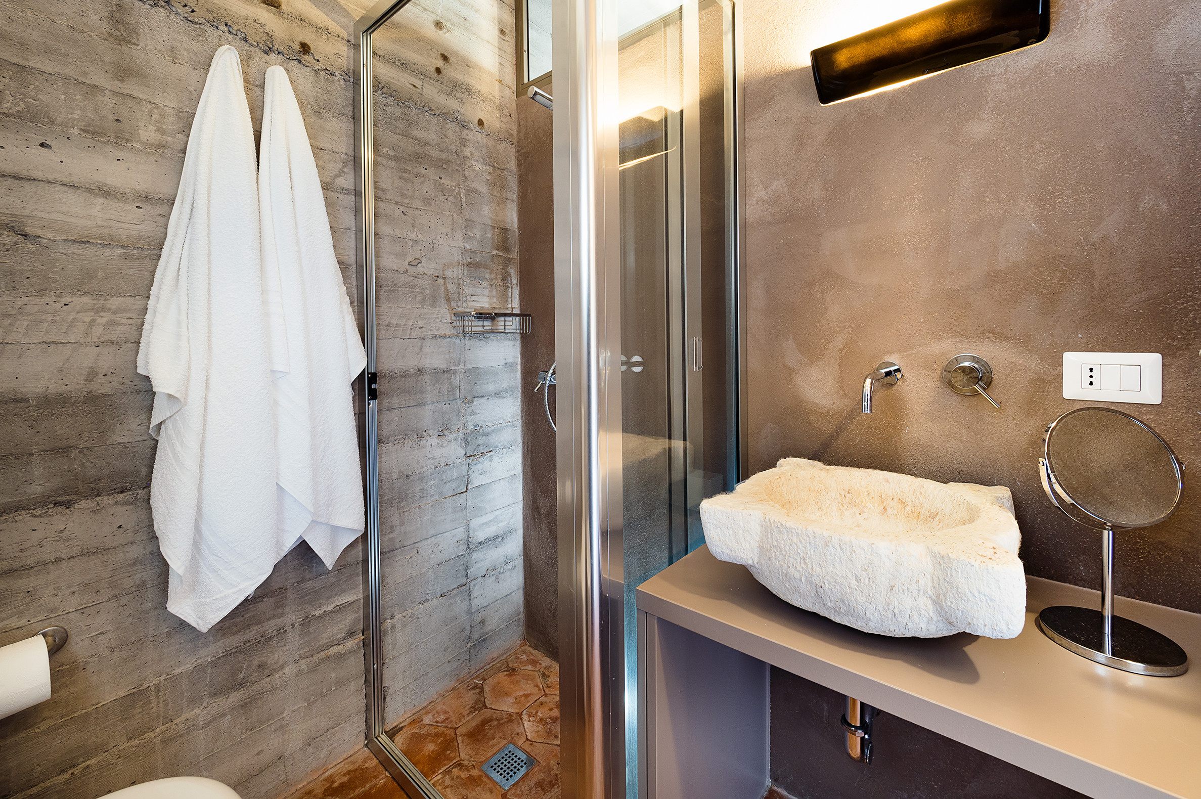 CASA PADRONALE Piano Terra: salotto con camino, sala da pranzo, cucina, 1 bagno, lavanderia. Primo Piano: 1 camera matrimoniale con bagno-doccia e vasca, 1 camera doppia/matrimoniale con bagno-doccia, 1 camera singola con bagno-doccia. Piano inferiore: zona benessere con vasca idromassaggio, grotta del sale, sauna, bagno turco, doccia emozionale, camino e area relax. CASETTA: 1 suite con letto matrimoniale (in soppalco) e divano letto singolo, 1 bagno con doccia.